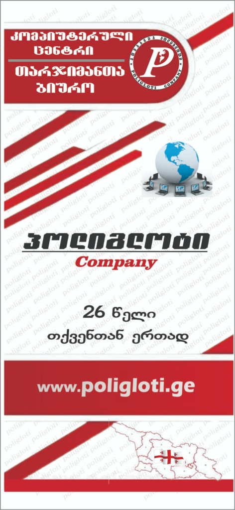 სწრაფად და ხირისხიანად შეგვიძლია შევასრულოთ ნებისმიერი პოლიგრაფიული დავალება. ლოგოს, ბლანკის და საერთო კორპორატიული სტილის დიზაინი ასევე წიგნის/ჟურნალის/კატალოგის დაკაბადონება .